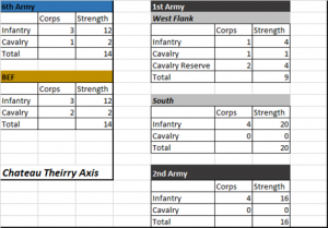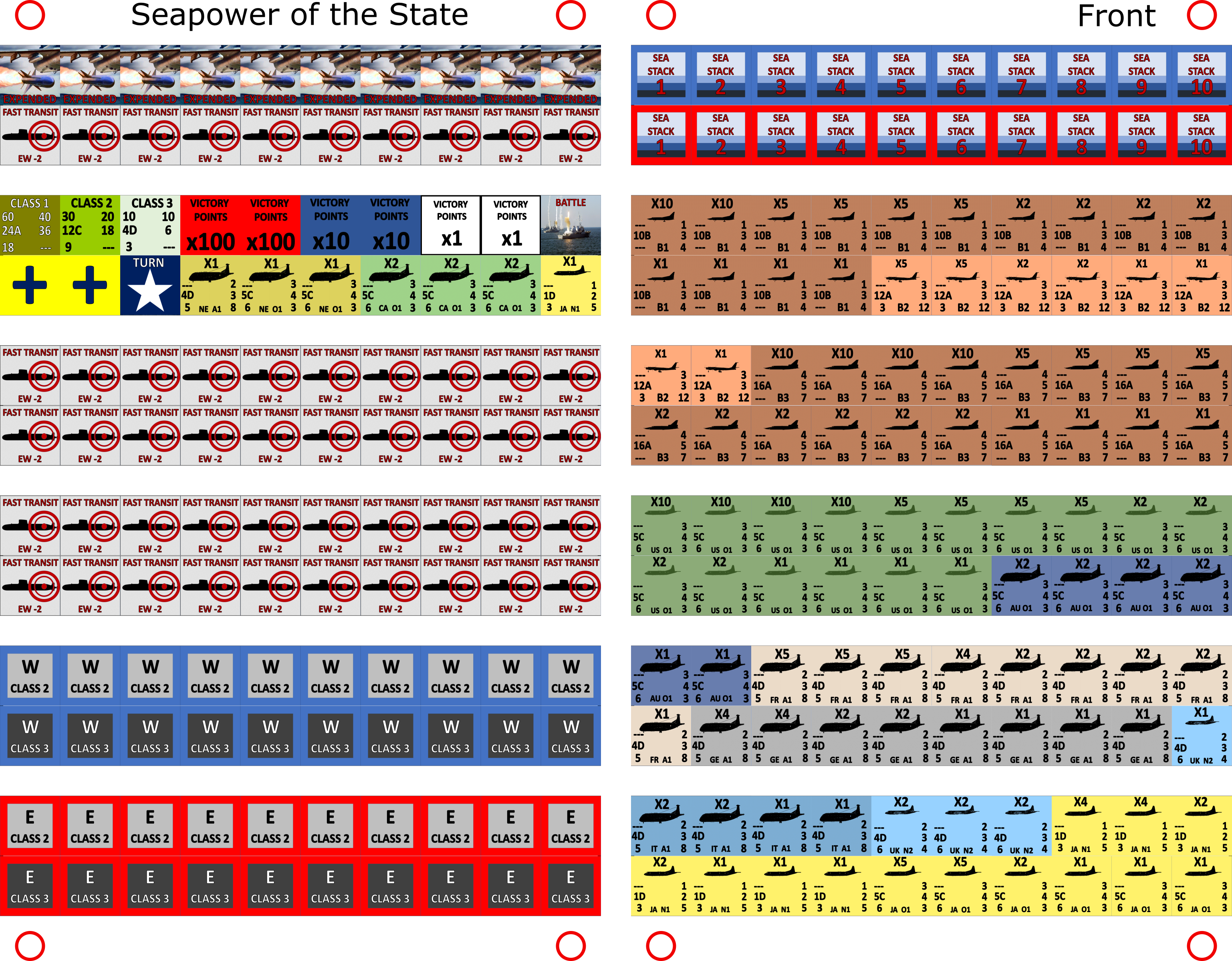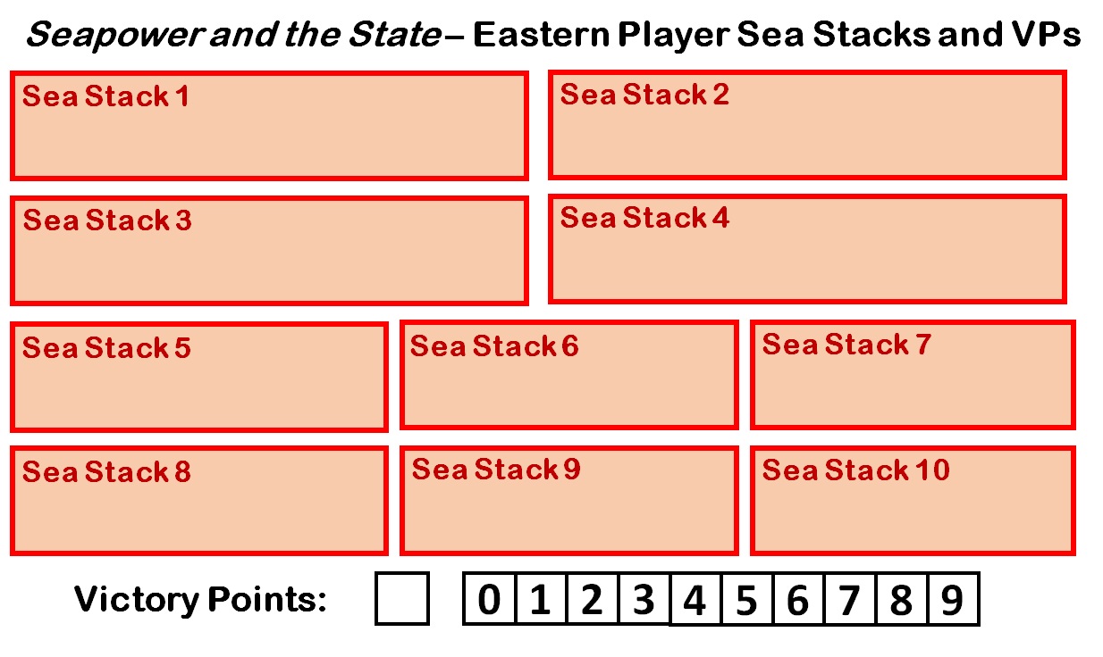 The most important markers you need are Stack markers (along with stack sheets to hold the unit counters of the stacks).  The game involves some horrible stacks, especially around Europe (imagine teetering stacks of a dozen units!).  I’ve included stack boards for each side, along with victory point tracks (victory point markers included as well – ones, tens, hundreds and positive/negative).