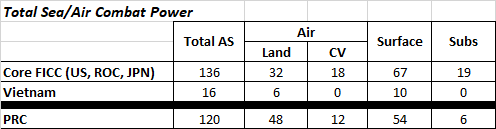 With the ROC and US air forces on Okinawa mostly grounded and slowly destroyed in their hardened shelters by precision air-to-ground and cruise missile strikes, FICC air over Taiwan depended on the CVBG.  The CVBG in its safe area was too far from Taiwan to be much more than an “air force in being”; able to threaten PRC amphibious assaults but not contest for air superiority.