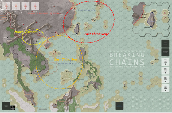 The FICC may gain political points by capturing China mainland hexes Zhan Jian or Ding Hai, or Paracel island hex N11 for a single Political Point each.